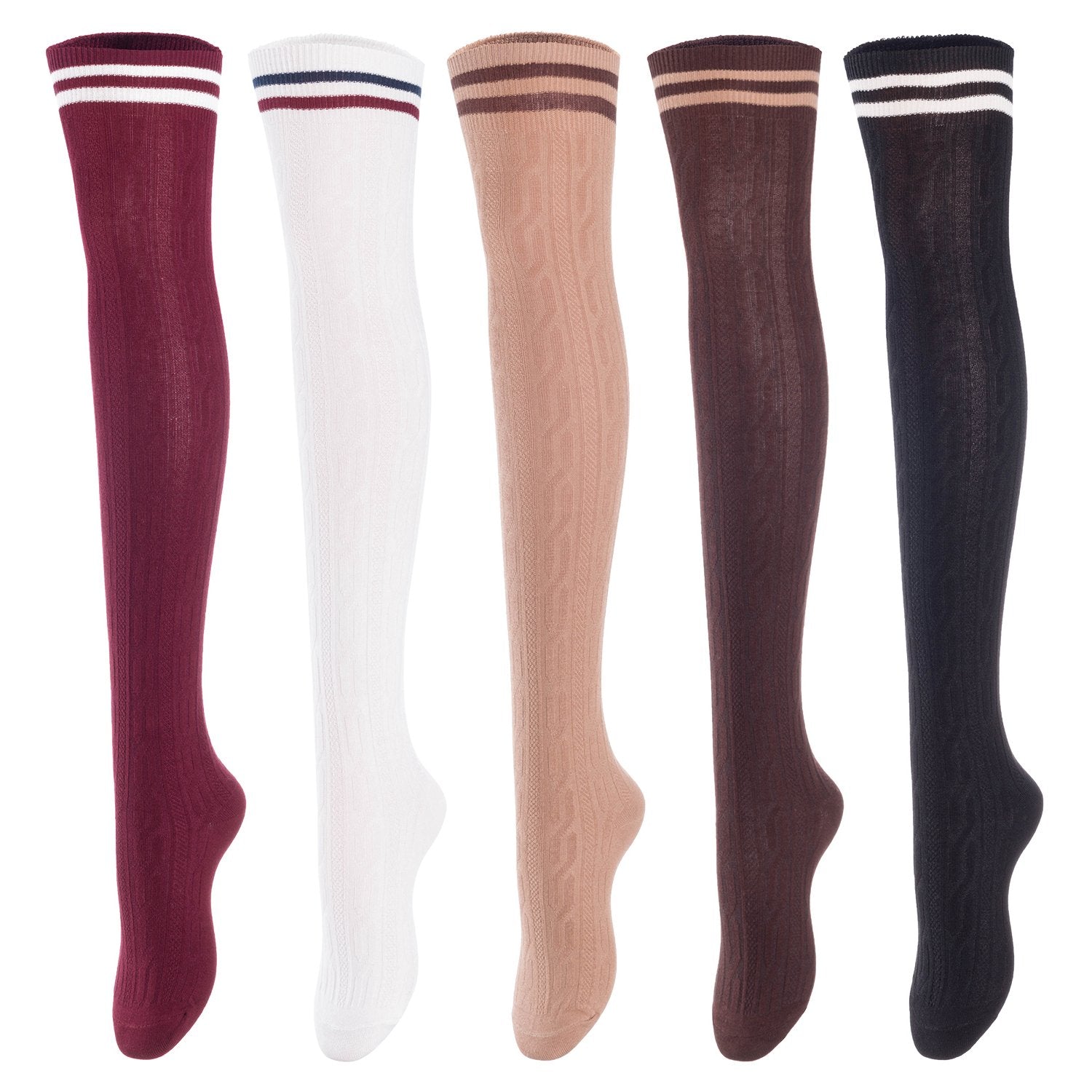 Lovely Annie Big Girl's Women's 5 Pairs Incredible Durable Super Soft Unique Over Knee High Thigh High Cotton Socks Size 6-9 A1023(Random)