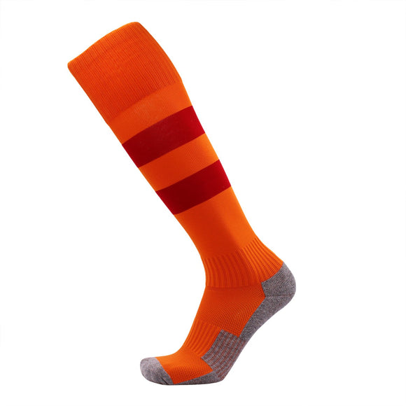 Lovely Annie Girls 1 Pair High Performance Knee High Sports Socks | Lighweight & Breathable Socks - Comfortable & Durable Size M MS1604101 (Orange w/ Red Strip)