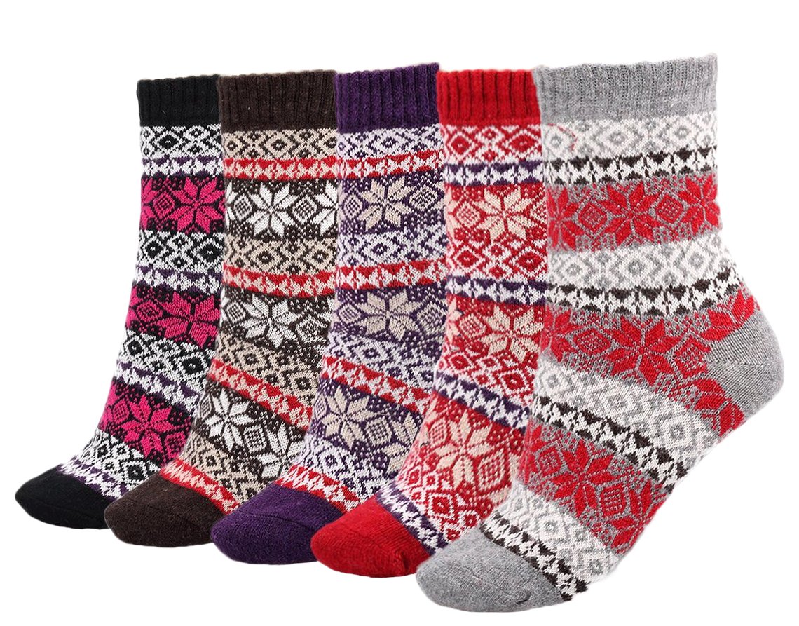 Lovely Annie Girl's 5 Pairs Pack Fashion Plaid-Maple Leaf Wool Socks One Size 6-9
