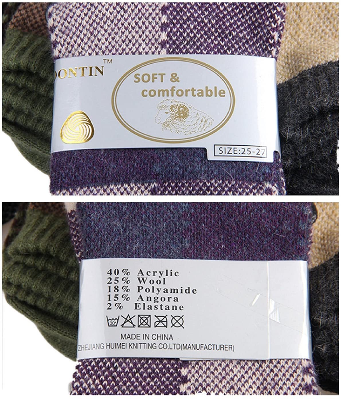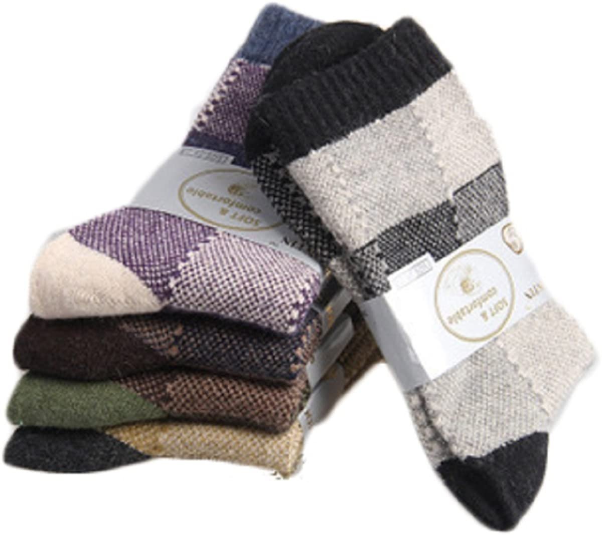 Lovely Annie Men's 5 Pairs Luxurious Angora Wool Crew Socks Big Square Size 7-10