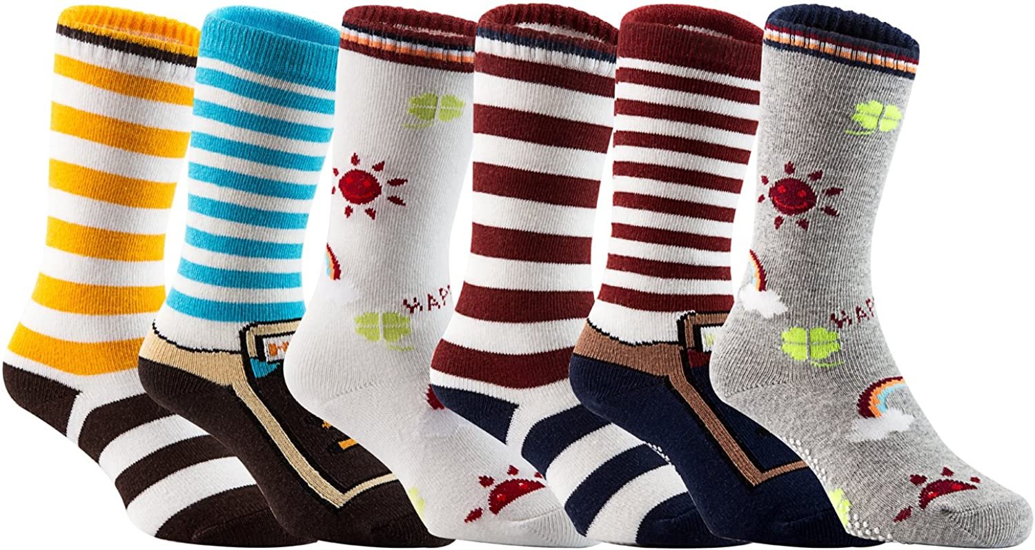 Lovely Annie Unisex Children 6 Pairs Pack Non-Skid Knee High Cotton Socks 6M-3Y
