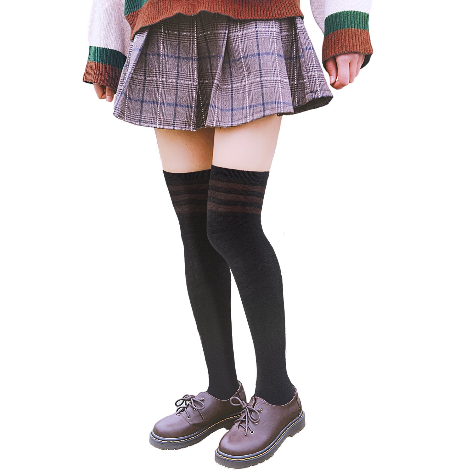 Lovely Annie Women's 1 Pair Incredible Thigh High Cotton Socks, Durable And Super Soft. Unique Over Knee High Ladies Socks Size 4.5-8.5(Coffee Strip)