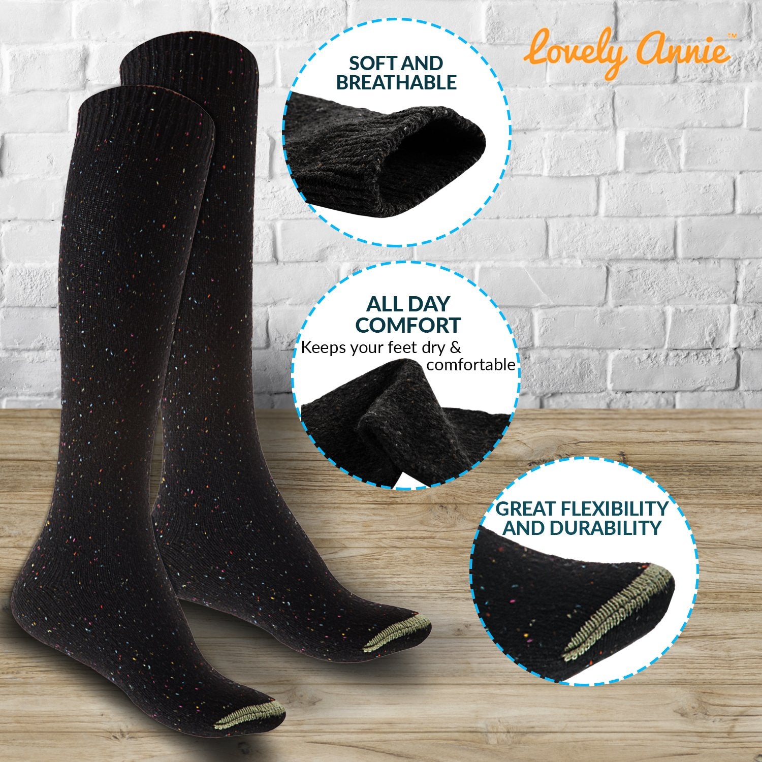 Lovely Annie Women's 3 Pairs Cute High Knee Cotton Socks, Cozy Fluffy Fancy with a Wide Color and Size Range Size 7-9 A158212(Black,Grey,Navy)