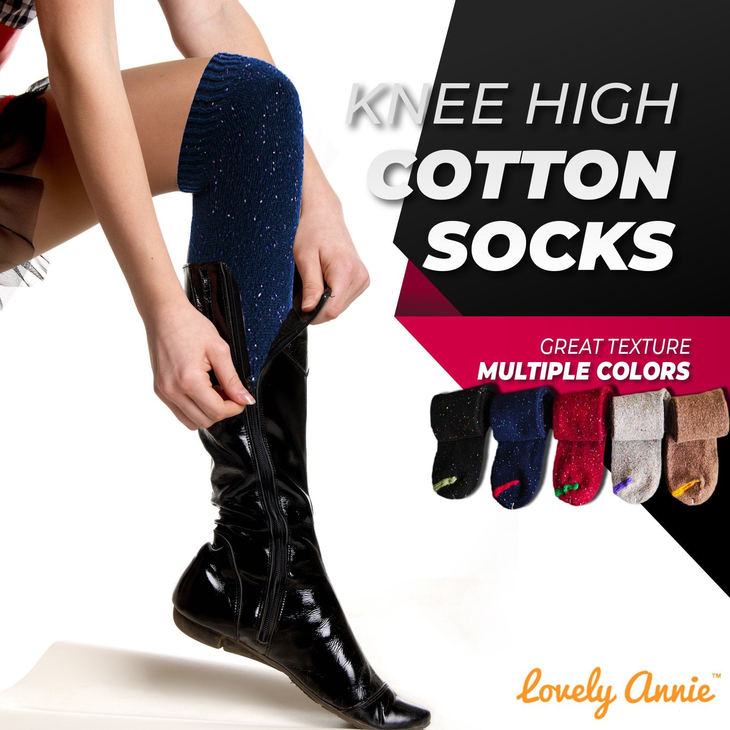 Best-selling knee-high cotton socks for womens and teen girls with 5 colors to produce stylish design which would match well with your shoes or boots from Monday to Friday! Very comfortable and stretchy! You can wear them as knee high/high crew boot socks or fold the top portion down to make them dress crew or slouch socks to work with your short boots for walking, horse riding or hiking!