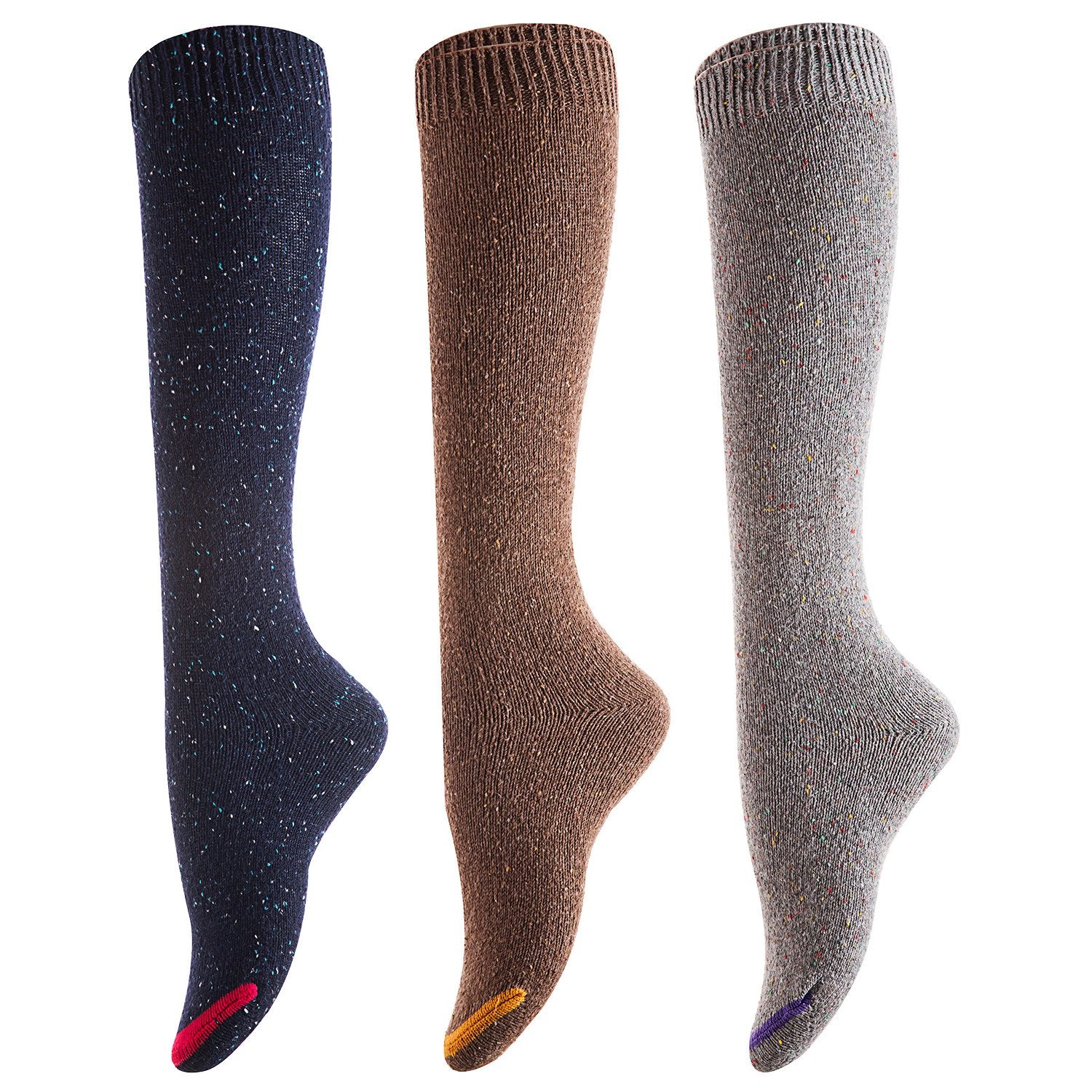 Lovely Annie Women's 3 Pairs Cute High Knee Cotton Socks, Cozy Fluffy Fancy with a Wide Color and Size Rangev Size 7-9 A158212(Grey,Coffee,Navy)