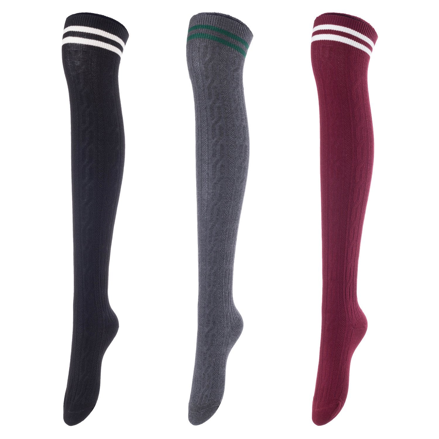 Lovely Annie Women's 3 Pairs Incredible Durable Super Soft Unique Over Knee High Thigh High Cotton Socks Size 6-9 A1023(Black,DarkGrey,Wine)