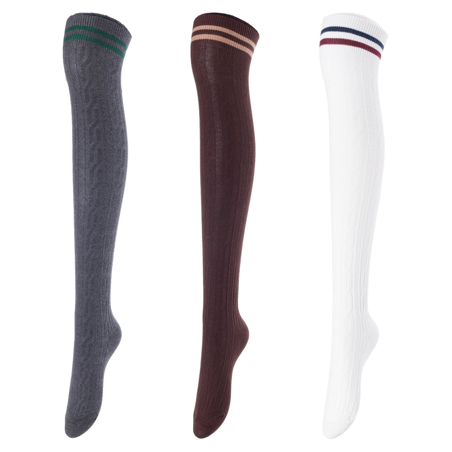 Lovely Annie Women's 3 Pairs Incredible Durable Super Soft Unique Over Knee High Thigh High Cotton Socks Size 6-9 A1023(DarkGrey,Coffee,White)