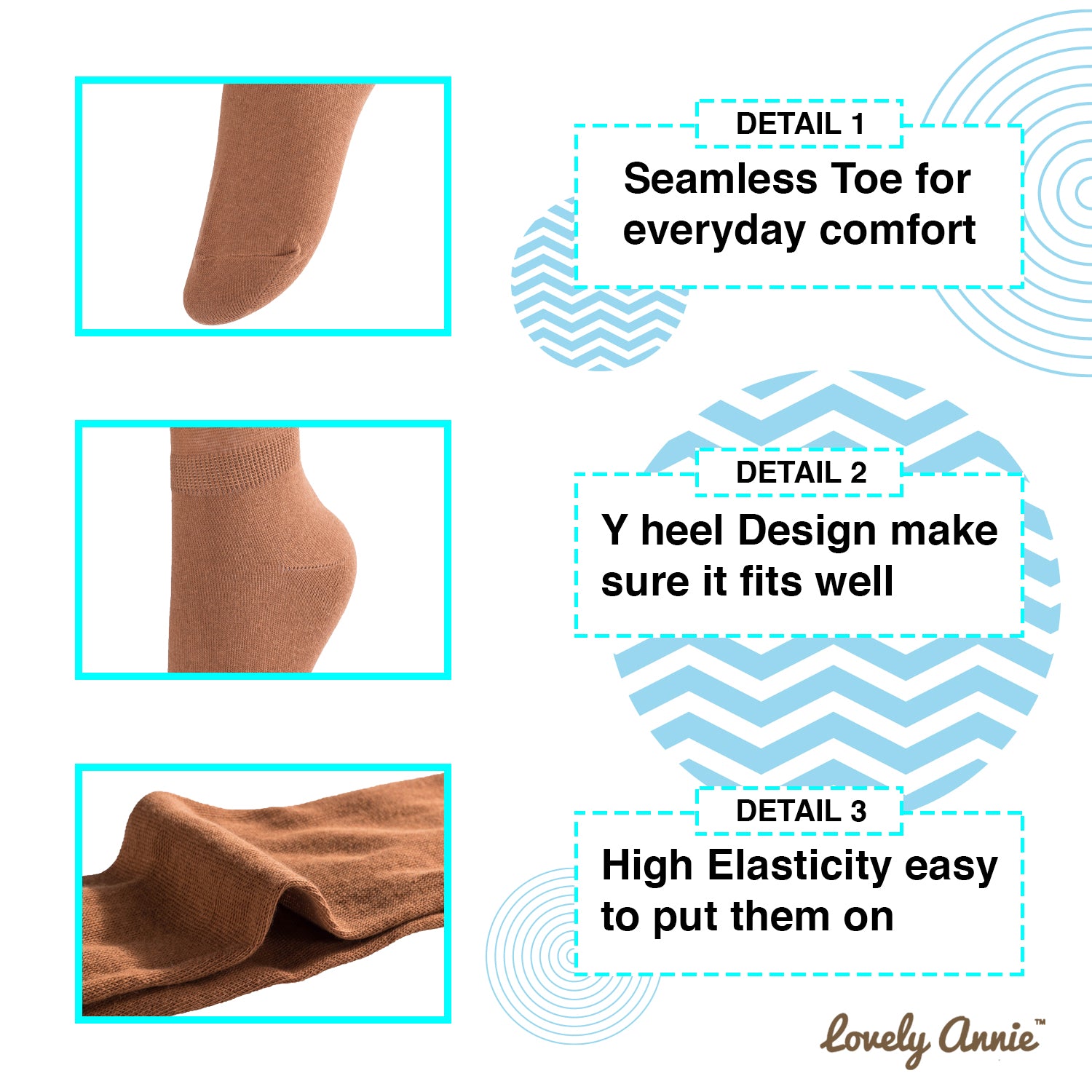 Knitted using the most advanced technology ensures that every lady sock is well crafted and flawless.