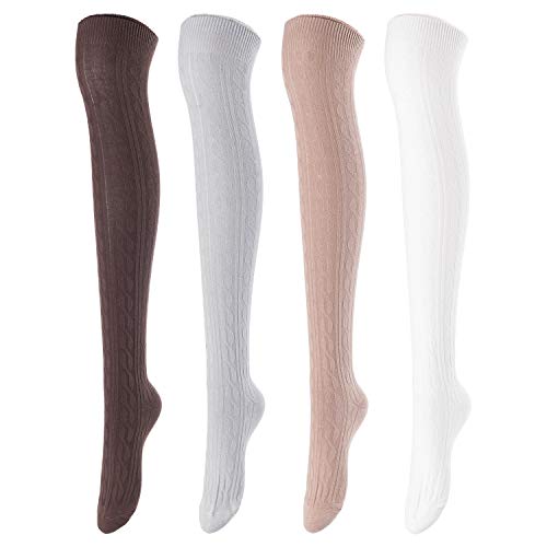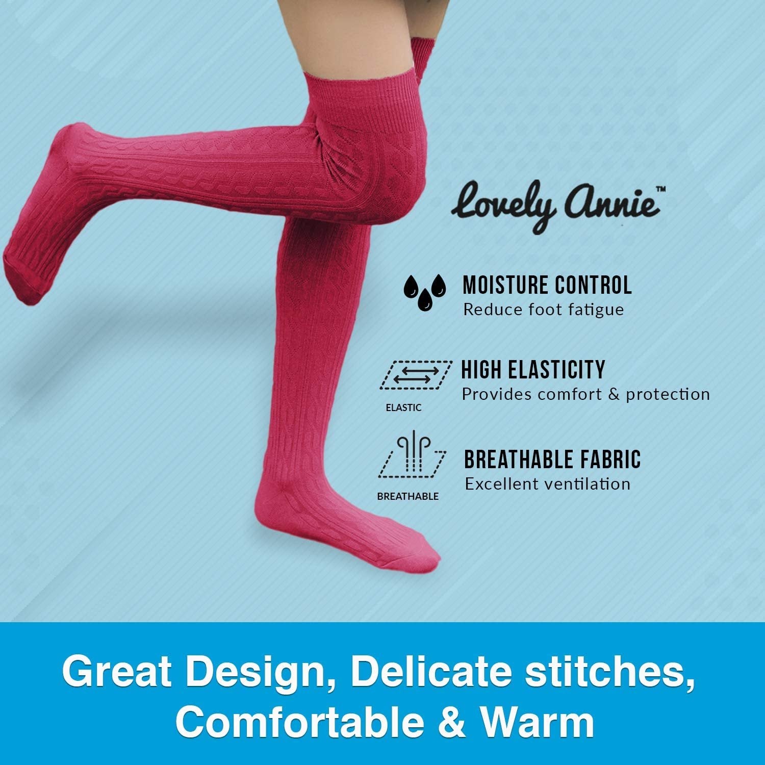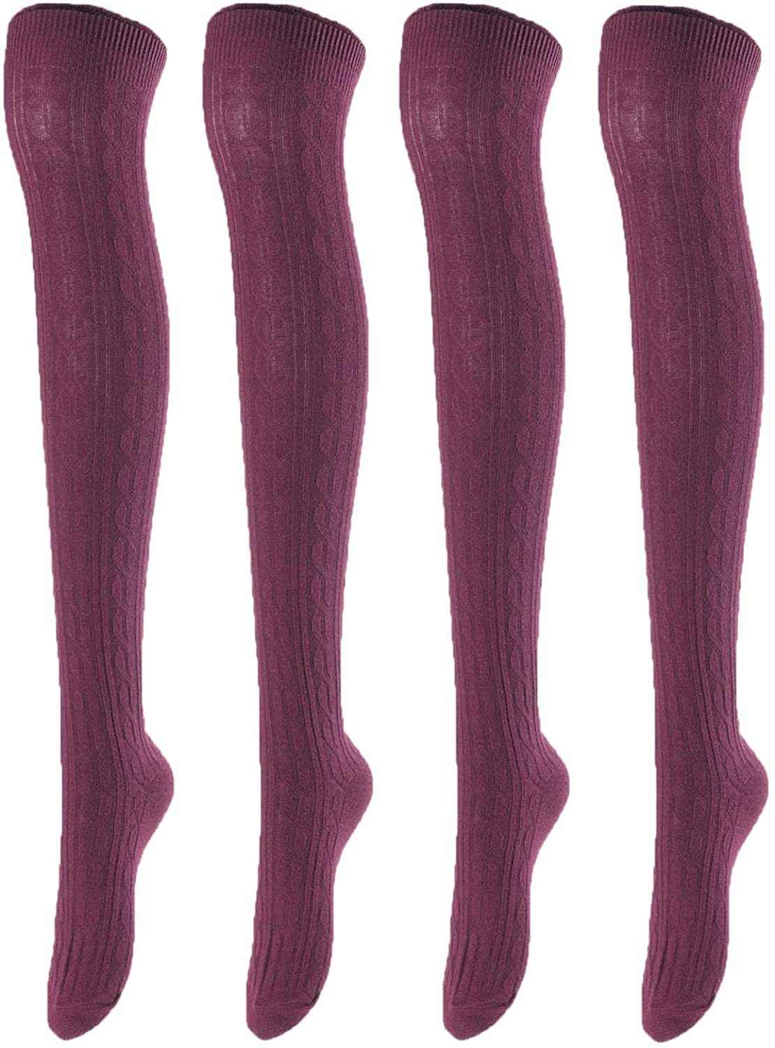 Lovely Annie Women's 4 Pairs Knee High Thigh High Cotton Socks A1024 Size 6-9