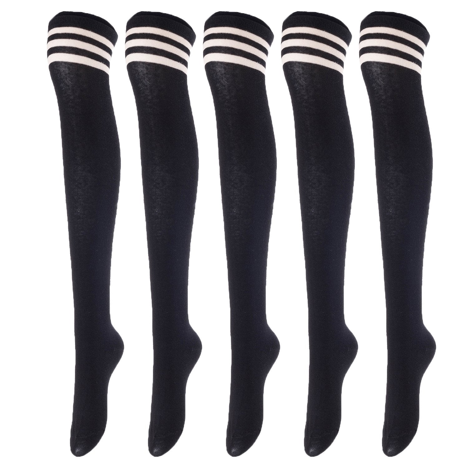 Lovely Annie Women's 5 Pairs Incredible Durable Super Soft Unique Over Knee High Thigh High Cotton Socks Size 6-9 A1022(Black)
