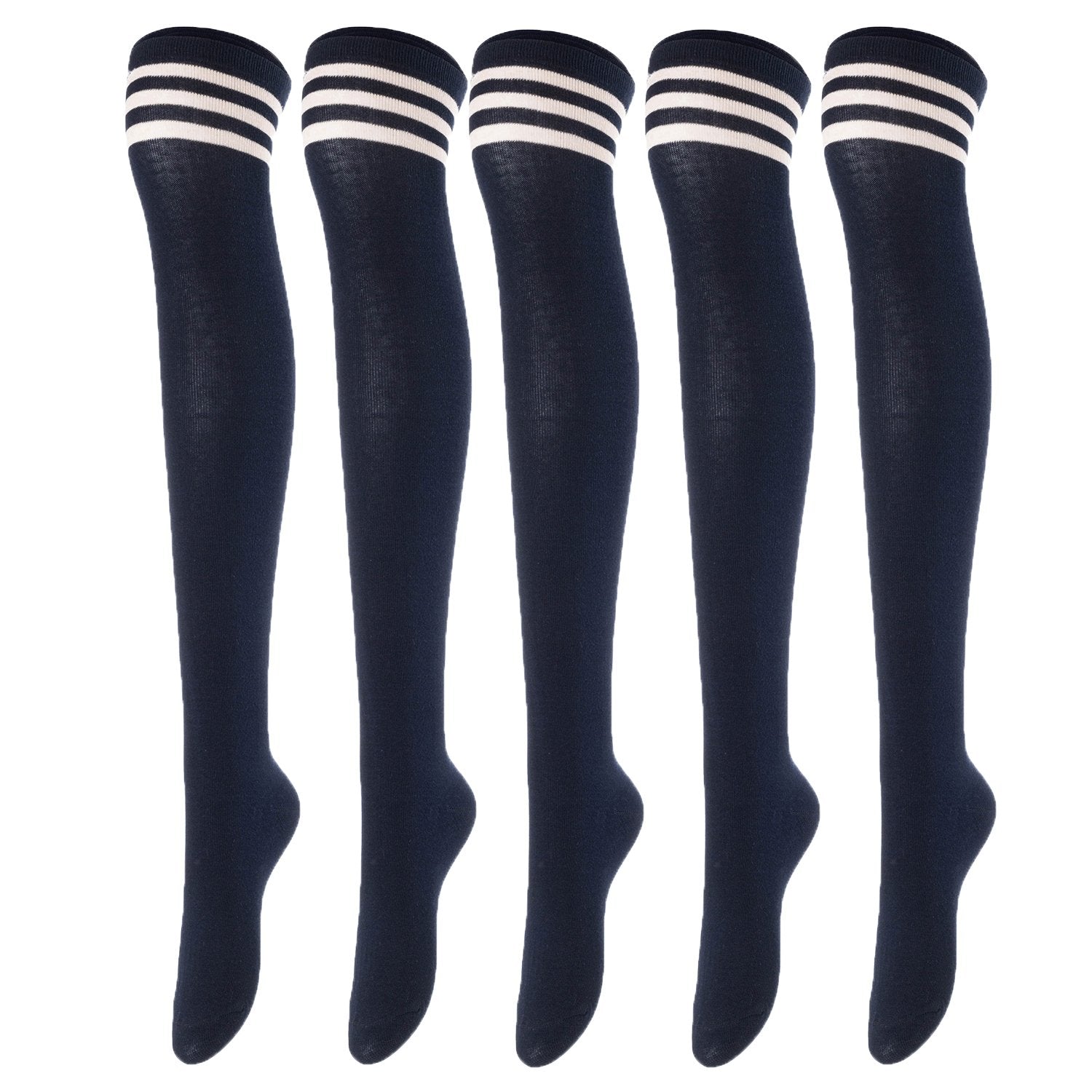 Lovely Annie Women's 5 Pairs Incredible Durable Super Soft Unique Over Knee High Thigh High Cotton Socks Size 6-9 A1022(Navy)