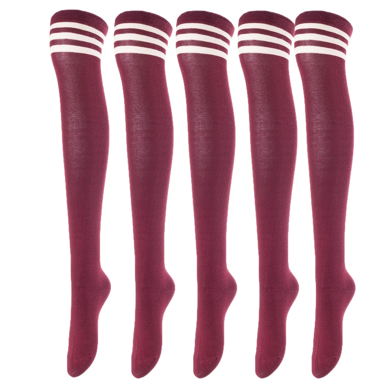 Lovely Annie Women's 5 Pairs Incredible Durable Super Soft Unique Over Knee High Thigh High Cotton Socks Size 6-9 A1022(Wine)