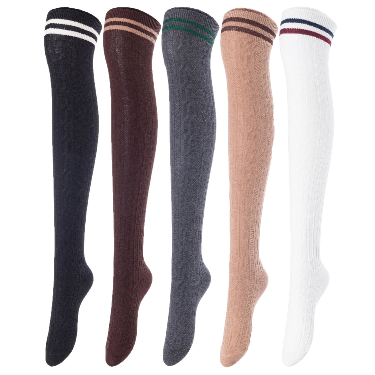 Lovely Annie Women's 5 Pairs Incredible Durable Super Soft Unique Over Knee High Thigh High Cotton Socks Size 6-9 A1023(Assorted)