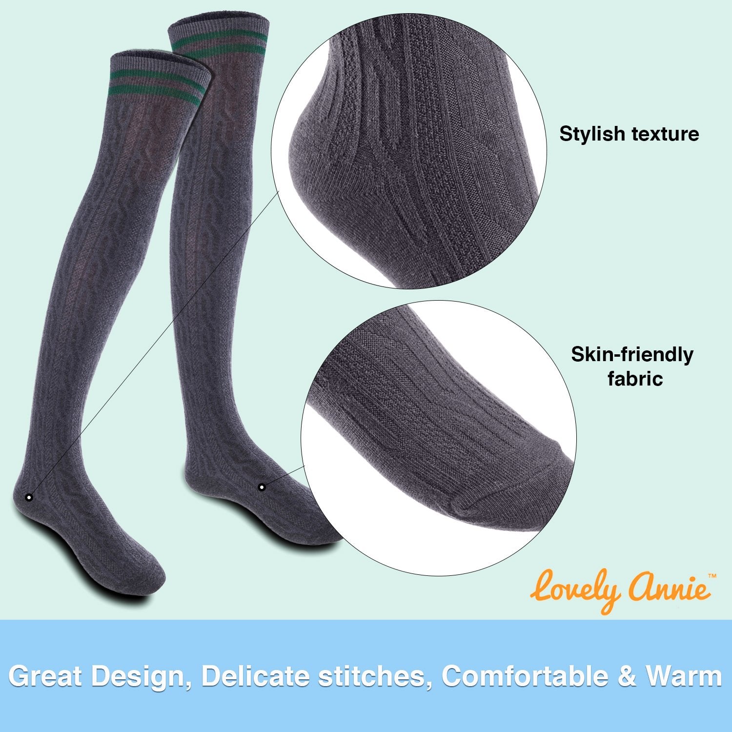 Lovely Annie Women's 5 Pairs Incredible Durable Super Soft Unique Over Knee High Thigh High Cotton Socks Size 6-9 A1023(Black,Coffee,DG,Khaki,White)