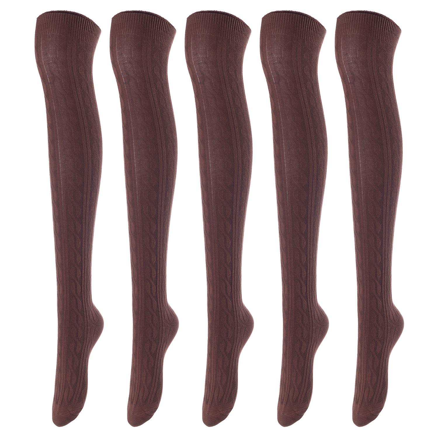 Lovely Annie Women's 5 Pairs Incredible Durable Super Soft Unique Over Knee High Thigh High Cotton Socks Size 6-9 A1024 (Coffee)