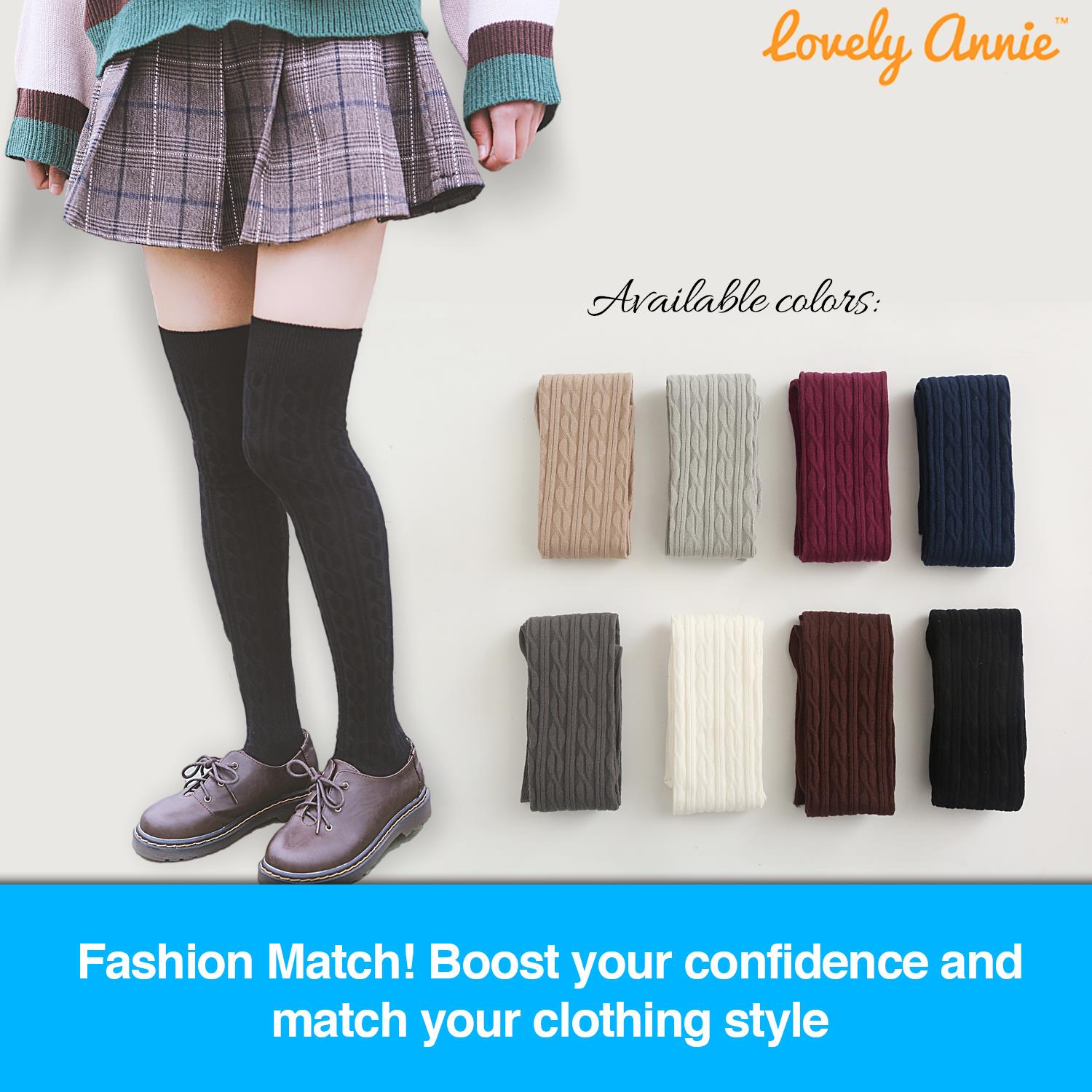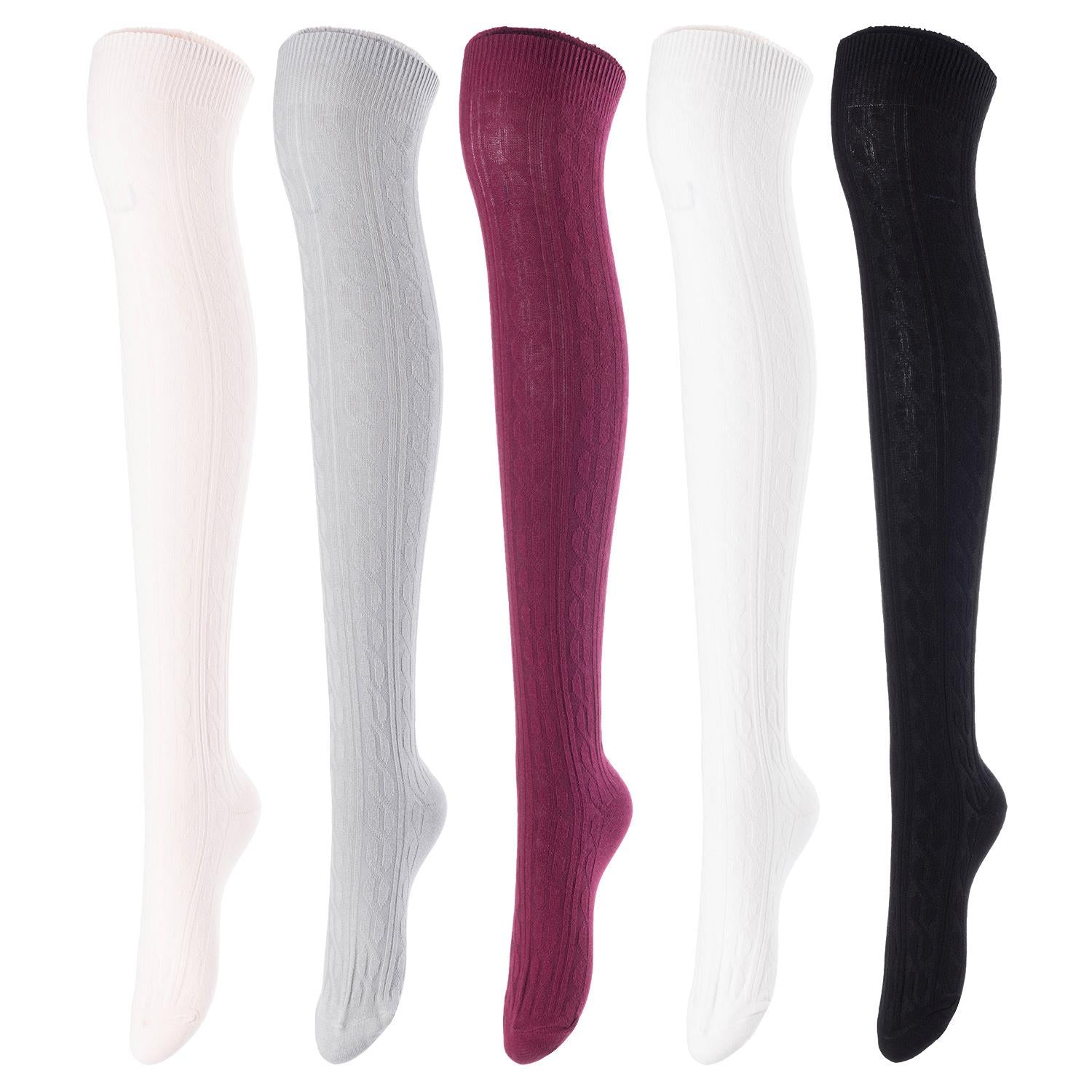 Lovely Annie Women's 5 Pairs Incredible Durable Super Soft Unique Over Knee High Thigh High Cotton Socks Size 6-9 A1024(Beige,LG,Wine,Cream,Black)