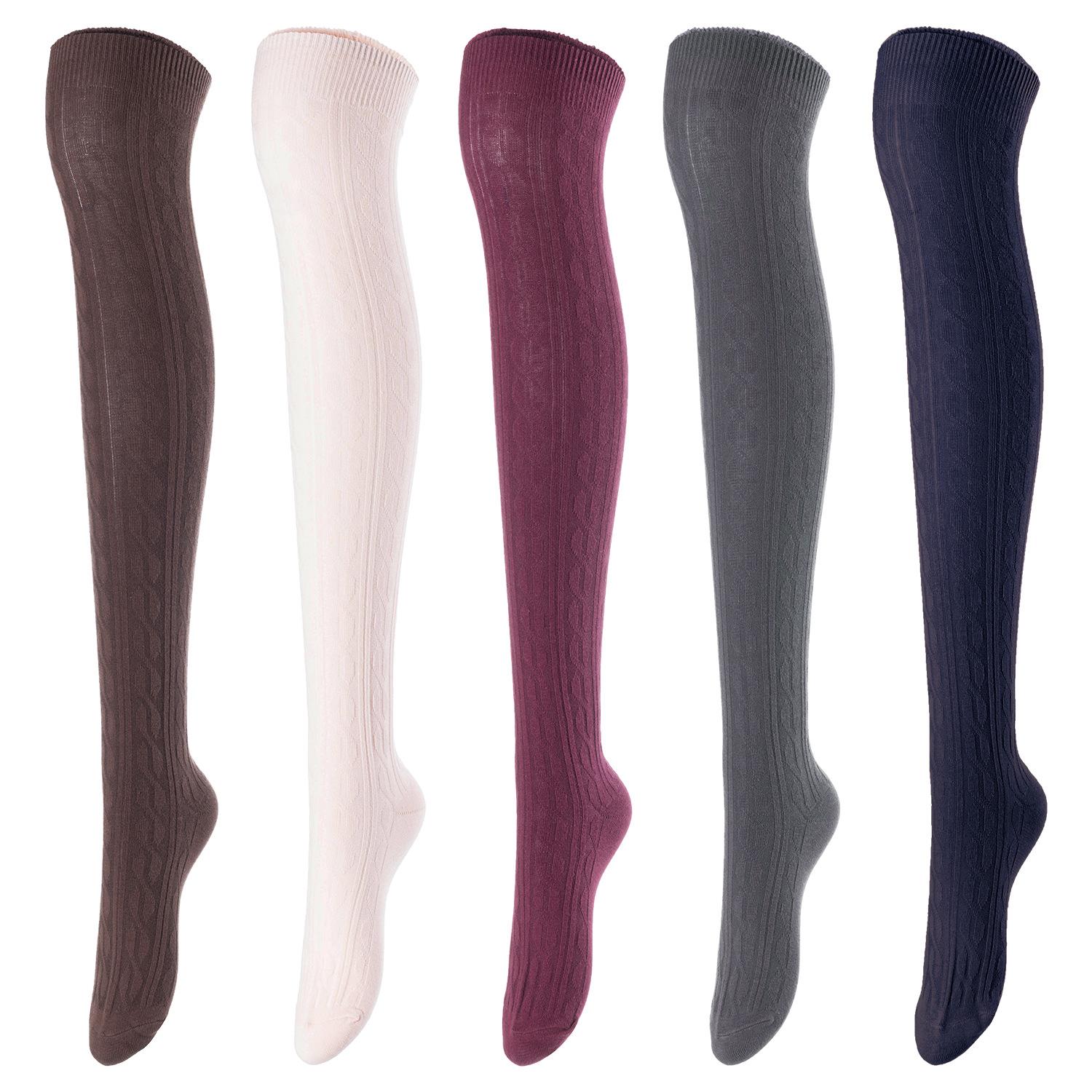 Lovely Annie Women's 5 Pairs Incredible Durable Super Soft Unique Over Knee High Thigh High Cotton Socks Size 6-9 A1024(Coffee,Beige,Wine,DG,Navy)