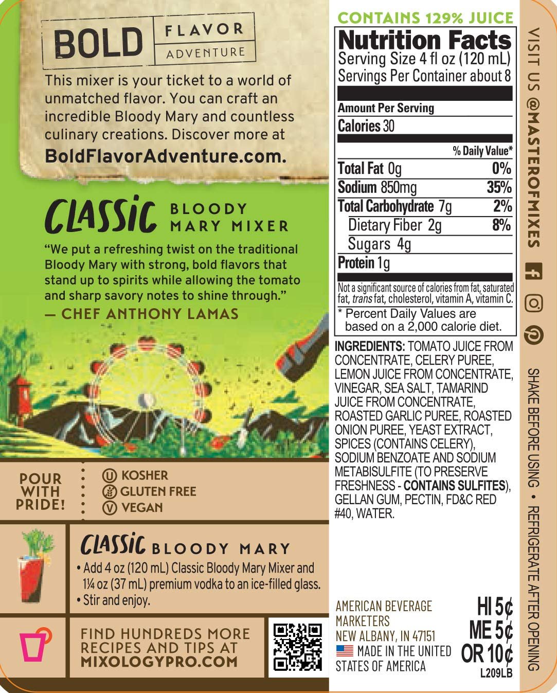 Master of Mixes Classic Bloody Mary Drink Mix is REFRESHING, ORIGINAL, TANGY, ZESTY