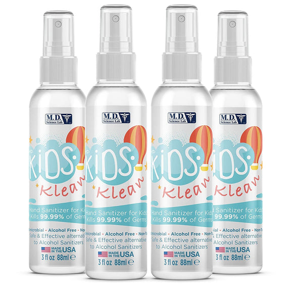 M.D. Science Lab MD Kids Klean Hand Sanitizer for Kids is alcohol-free, yet a powerful and gentle alternative to Alcohol Sanitizers. This formula with Tea Tree Oil and Aloe moisturizes and softens the skin, and it’s safe to use by you and your kids every day