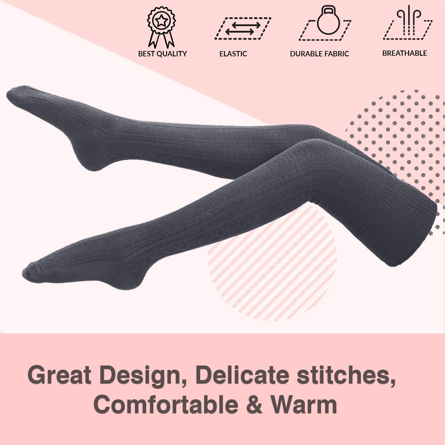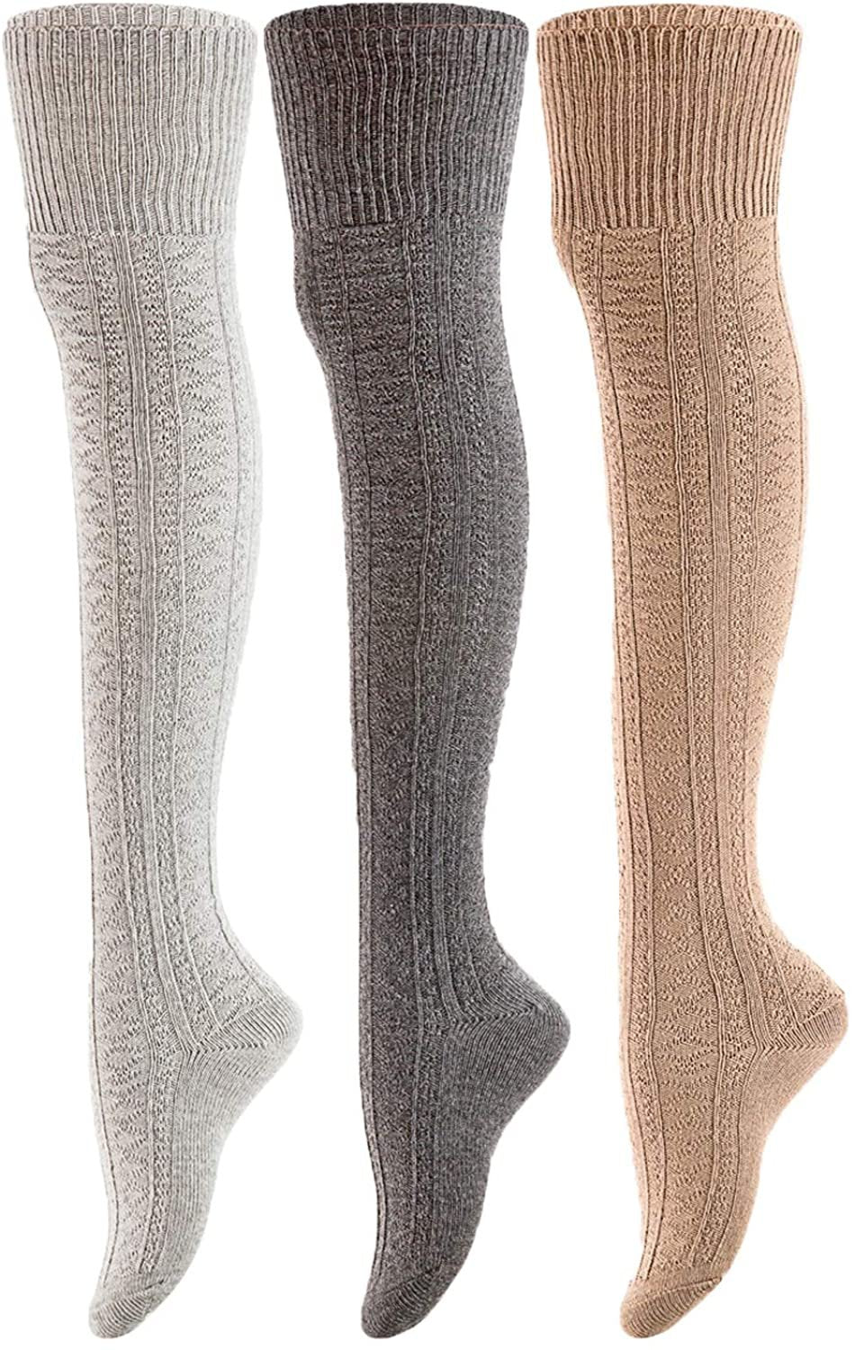 Meso Women's 3 Pairs Awesome Thigh High Cotton Socks, Comfortable, Soft and Super Durable Size 6-9 M1025-01 (Grey, Dark Grey, Beige)