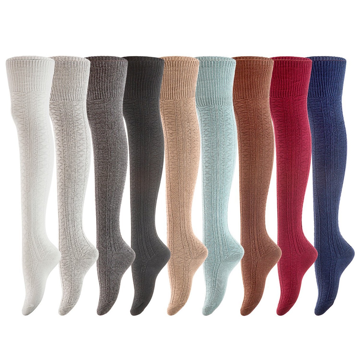 Meso Women's 3 Pairs Awesome Thigh High Cotton Socks, Comfortable, Soft and Super Durable Size 6-9 M1025-05 (Random Color)