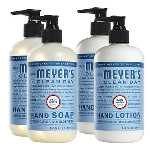 Mrs. Meyers Clean Day, 2 Packs Liquid Hand Soap 12.5 OZ, 2 Packs Hand Lotion 12 OZ, Rainwater, 4-Packs