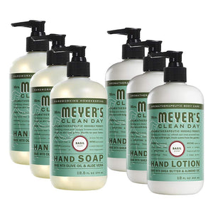 Mrs. Meyers Clean Day, 3 Packs Liquid Hand Soap 12.5 OZ, 3 Packs Hand Lotion 12 OZ, Basil, 6-Packs