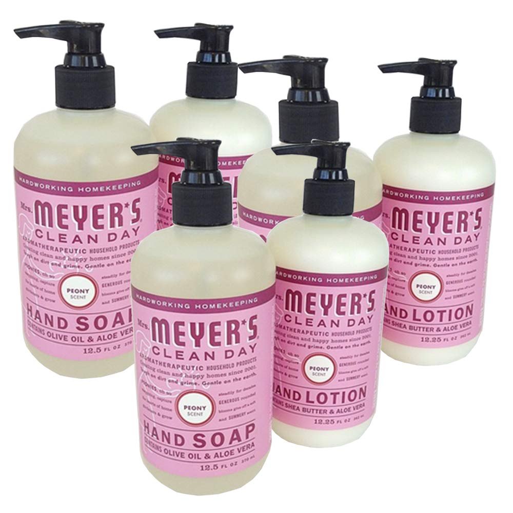 Mrs. Meyers Clean Day, 3 Packs Liquid Hand Soap 12.5 OZ, 3 Packs Hand Lotion 12 OZ, Peony, 6-Packs