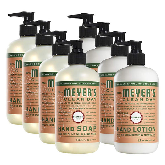 Mrs. Meyers Clean Day, 4 Packs Liquid Hand Soap 12.5 OZ, 4 Packs Hand Lotion 12 OZ, Geranium, 8-Packs