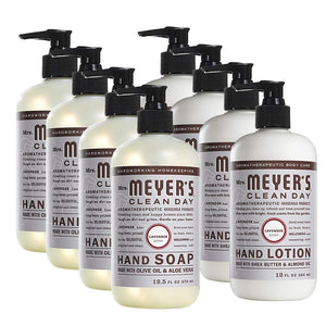 Mrs. Meyers Clean Day, 4 Packs Liquid Hand Soap 12.5 OZ, 4 Packs Hand Lotion 12 OZ, Lavender, 8-Packs