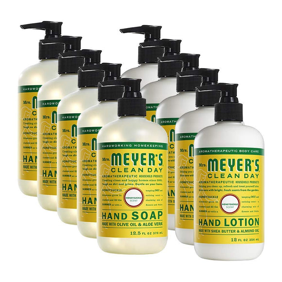 Mrs. Meyers Clean Day, 5 Packs Liquid Hand Soap 12.5 OZ, 5 Packs Hand Lotion 12 OZ, Honey Suckle, 10-Packs