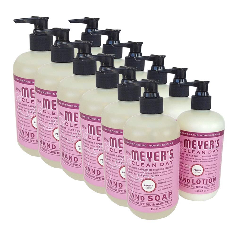 Mrs. Meyers Clean Day, 6 Packs Liquid Hand Soap 12.5 OZ, 6 Packs Hand Lotion 12 OZ, Peony, 12-Packs