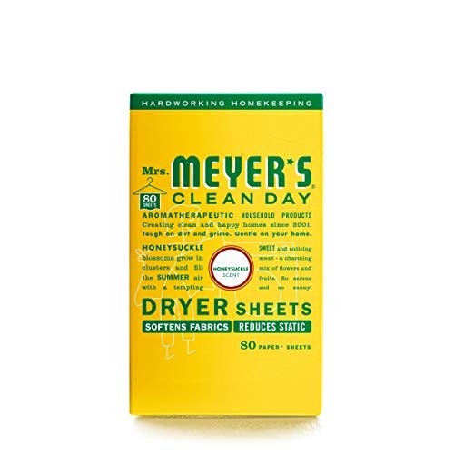 Mrs. Meyer's Clean Day Dryer Sheets, Softens Fabric, Reduces Static, Cruelty Free Formula, Honeysuckle Scent, 80 Count