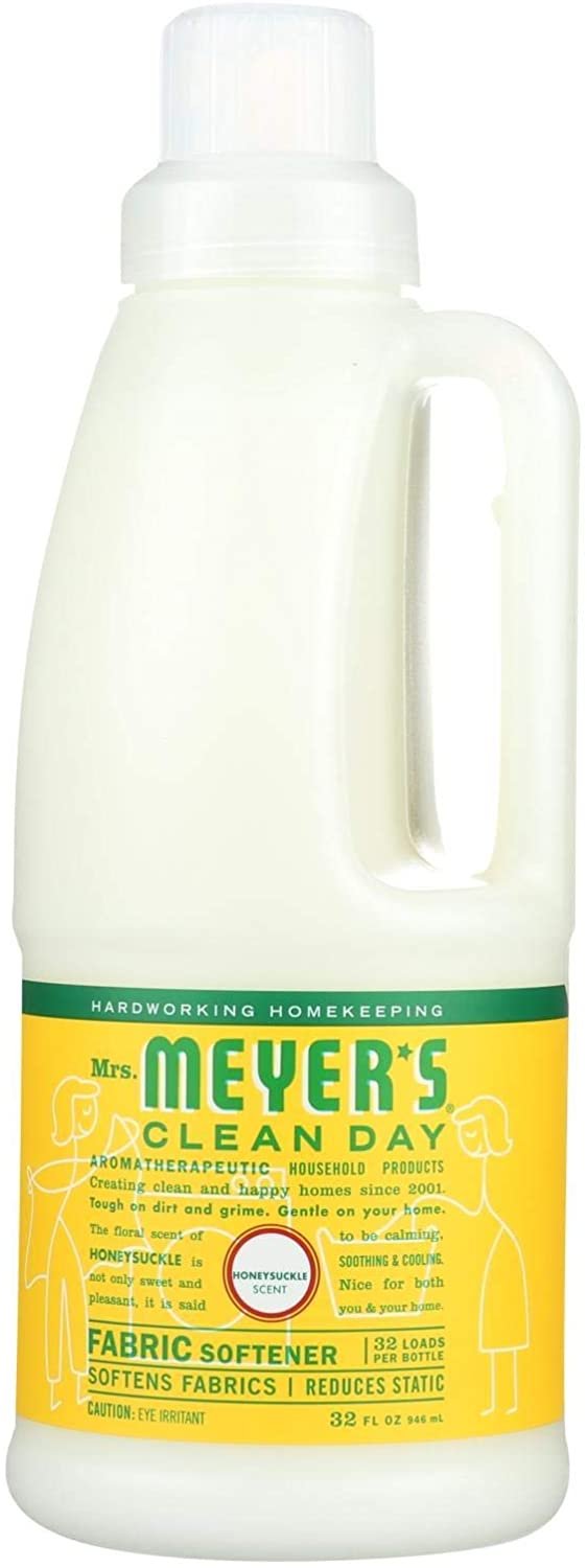 Mrs. Meyer's clean day honeysuckle fabric softener softens fabrics and reduces static with plant-Derived ingredients, natural essential oils and glycerin. Our certified cruelty-Free formula contains no parabens, phthalates or formaldehyde. Each 32 oz. Bottle of fabric softener can do thirty-Two loads of laundry.