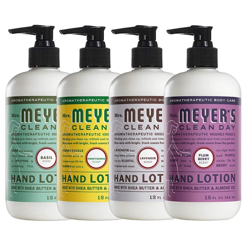 Mrs. Meyers Clean Day Hand Lotion, 1 Pack Basil, 1 Pack Honeysuckle, 1 Pack Lavender, 1 Pack Plumbery, 12 OZ each