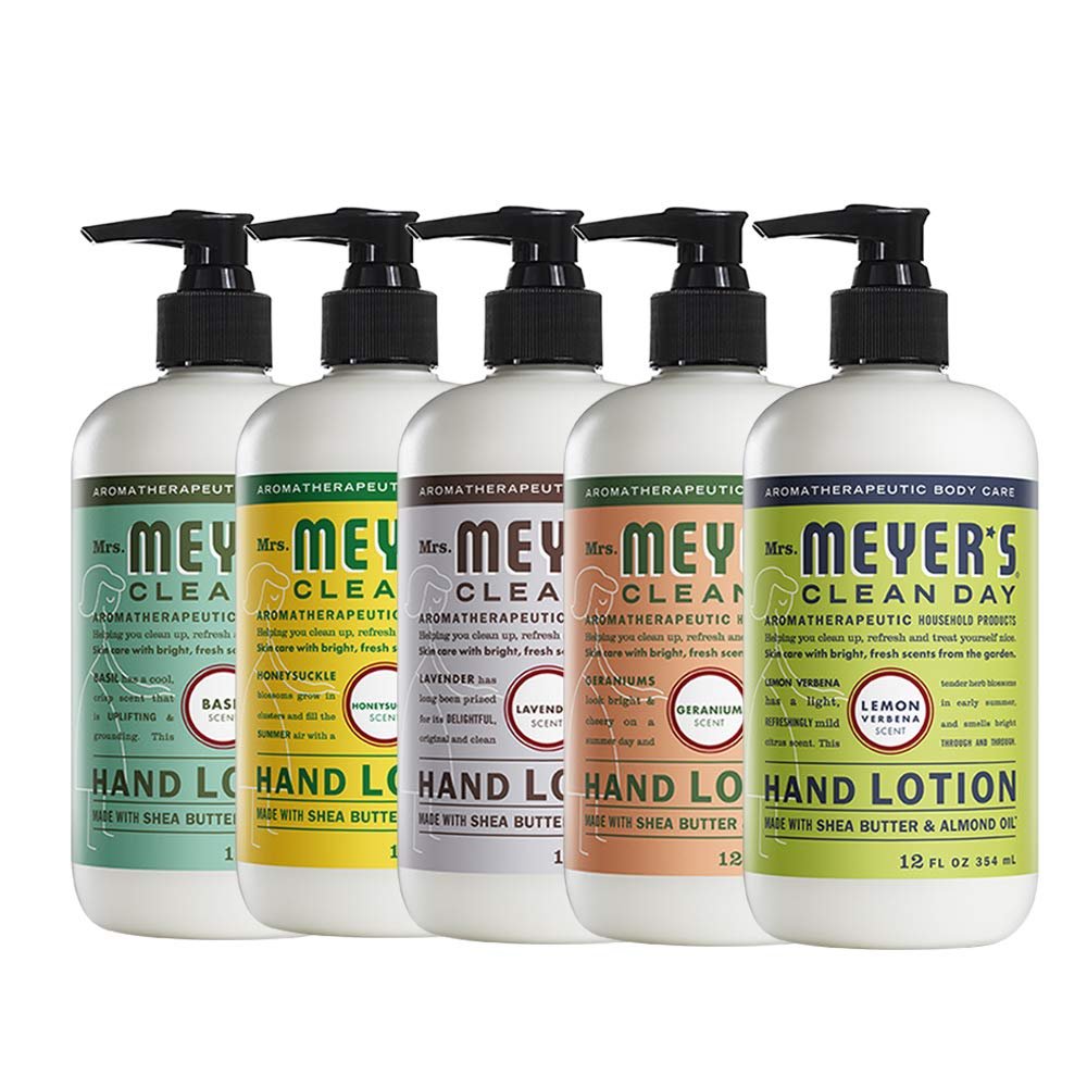 Mrs. Meyers Clean Day Hand Lotion, 1 Pack Basil, 1 Pack Lavender, 1 Pack Geranium, 1 Pack Lavender, 1 Pack Lemon Verbena, 12 OZ each