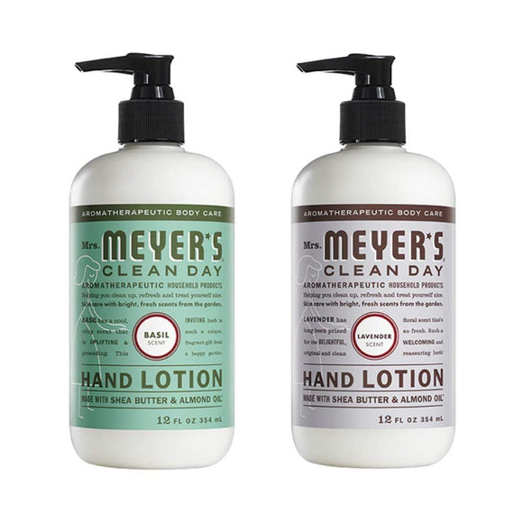 Mrs. Meyers Clean Day Hand Lotion, 1 Pack Basil, 1 Pack Lavender, 12 OZ each