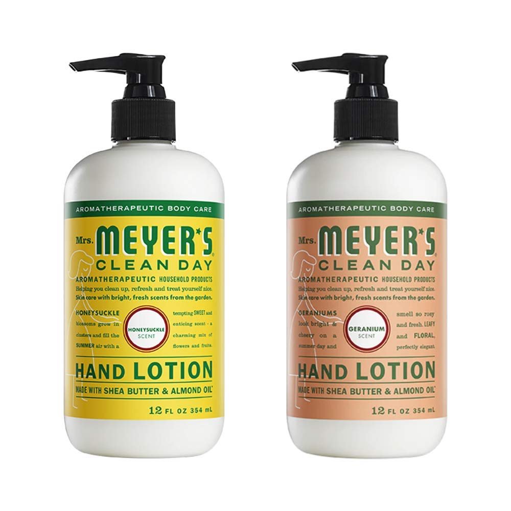 Mrs. Meyers Clean Day Hand Lotion, 1 Pack Honeysuckle, 1 Pack Geranium, 12 OZ each