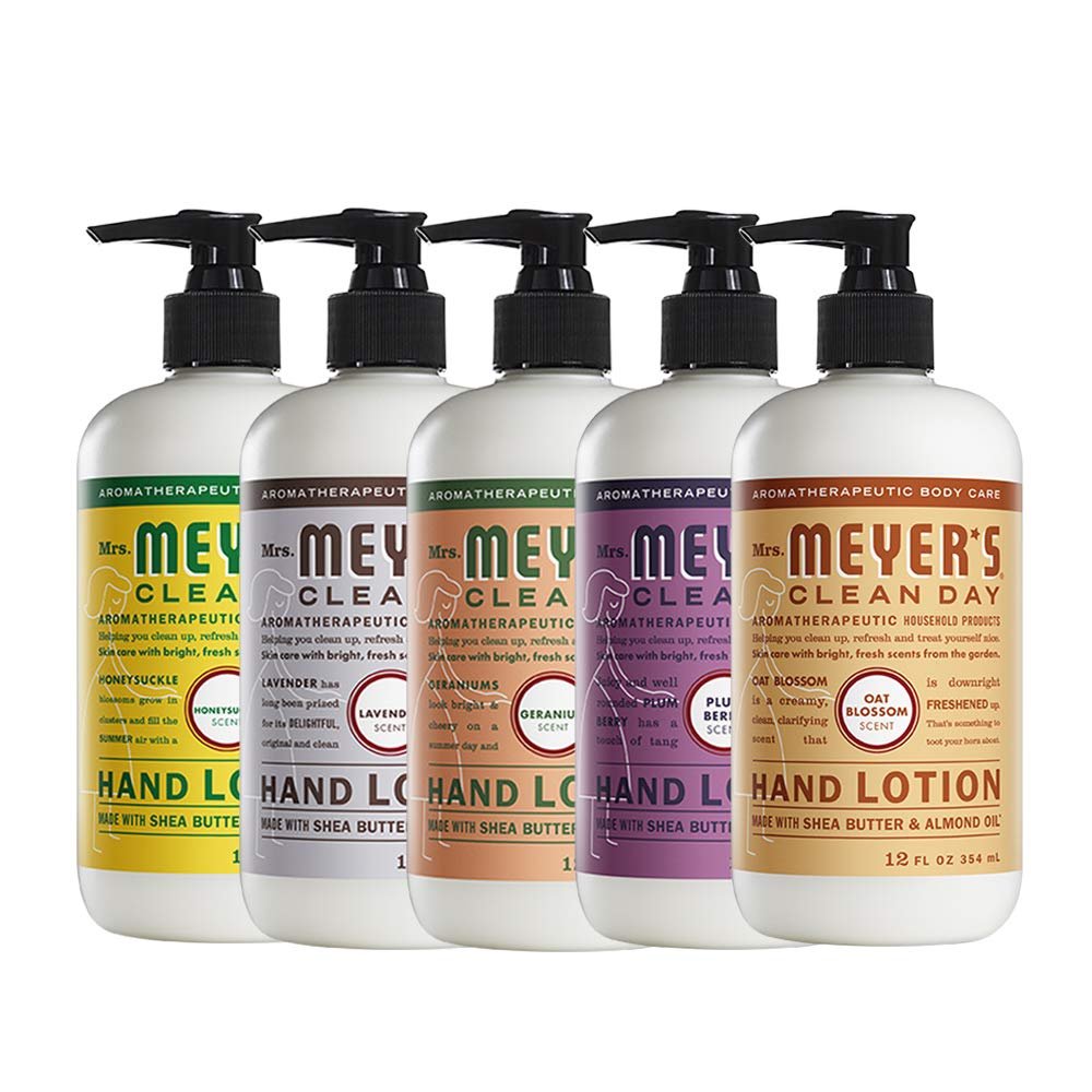 Mrs. Meyers Clean Day Hand Lotion, 1 Pack Honeysuckle, 1 Pack Lavender, 1 Pack Geranium, 1 Pack Plumbery, 1 Pack Oat Blosom, 12 OZ each