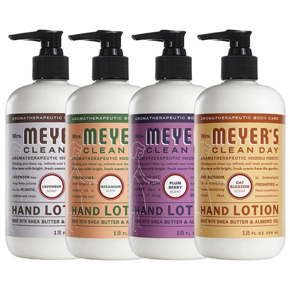 Mrs. Meyers Clean Day Hand Lotion, 1 Pack Lavender, 1 Pack Geranium, 1 Pack Plumbery, 1 Pack Oat Blosom, 12 OZ each