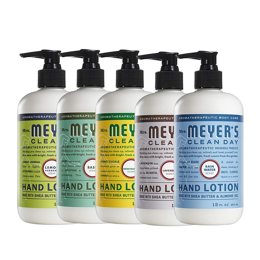 Mrs. Meyers Clean Day Hand Lotion, 1 Pack Lemon Verbena, 1 Pack Basil, 1 Pack Honeysuckle, 1 Pack Lavender, 1 Pack Rainwater, 12 OZ each