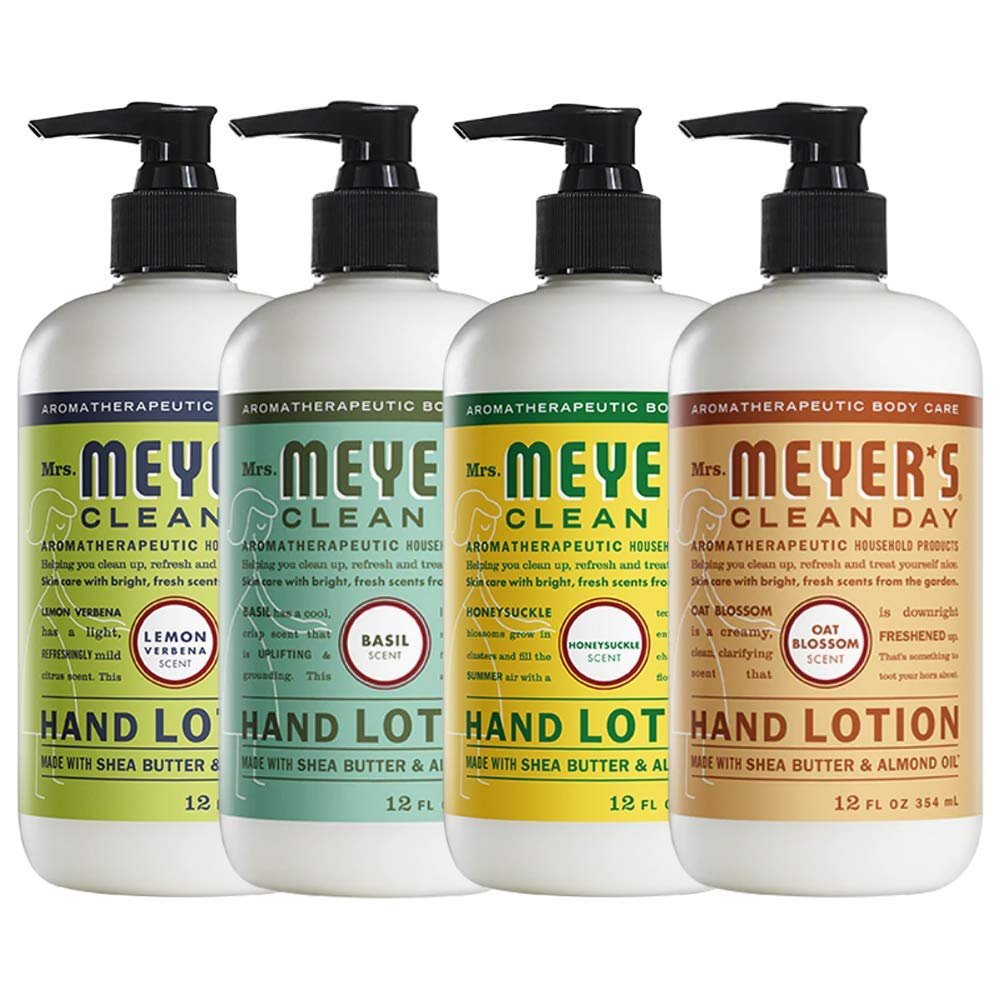 Mrs. Meyers Clean Day Hand Lotion, 1 Pack Lemon Verbena, 1 Pack Basil, 1 Pack Honeysuckle, 1 Pack Oat Blosom, 12 OZ each
