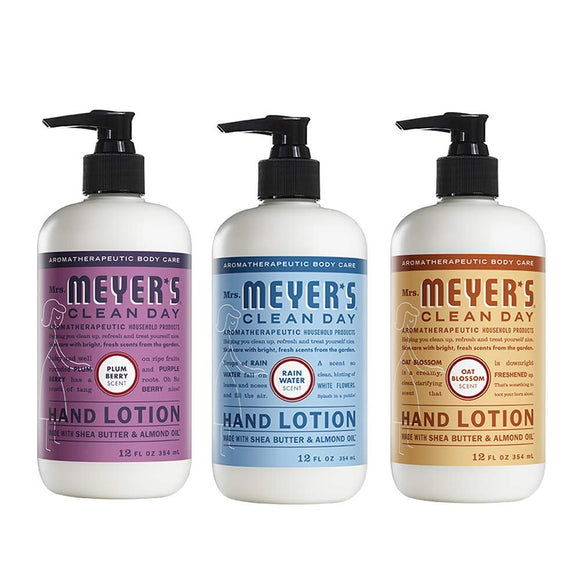 Mrs. Meyers Clean Day Hand Lotion, 1 Pack Plumbery, 1 Pack Rainwater, 1 Pack Oat Blosom, 12 OZ each