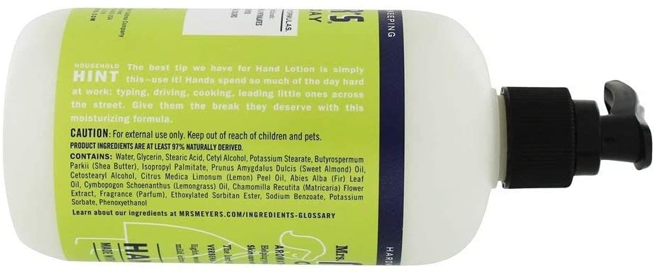 Mrs. Meyer's Clean Day Hand Lotion is made with sweet almond oil and shea butter to help soften the driest hands without a greasy or heavy feeling. Give your hard working hands the break they deserve with this moisturizing formula.