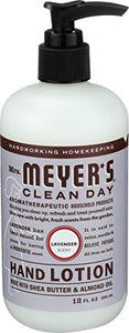Mrs. Meyers Clean Day Lavender Hand Lotion is specifically made to moisturize dry hands without leaving behind a greasy residue, while also providing a special, singular scent for your entire home. Lavender scent has long been prized for its original and clean floral fragrance. Such a pretty and reassuring herb! Apply after using Mrs. Meyers Hand Soap to maintain those soft, hard- working hands. Use as lavender body lotion or apply to your feet and put on your socks for an overnight dry foot remedy. Lotion made with shea butter, almond oil, essential oils, and other thoughtfully chosen ingredients that soften dry hands. Best of all, our garden-fresh hand lotions are made without parabens or formaldehyde and always cruelty free. A Leaping Bunny Certified product. Also available in other garden inspired scents and products such as hand soaps, laundry detergents, candles, and so much more! Mrs. Meyers rooted in goodness.