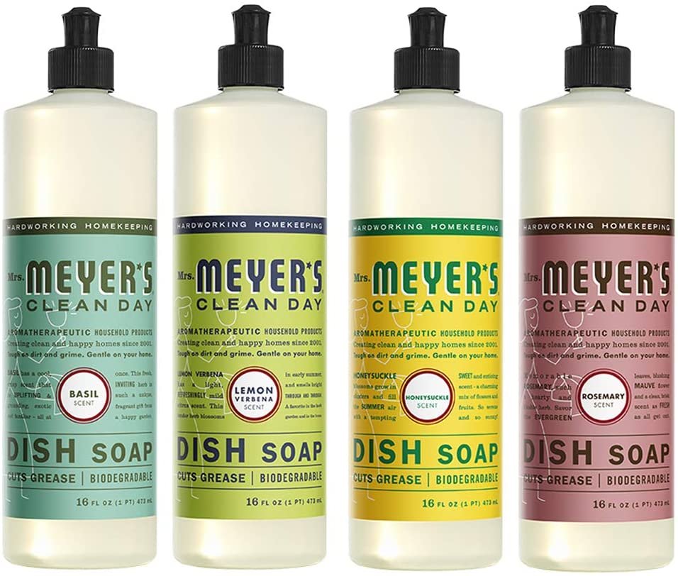 Mrs. Meyers Clean Day Liquid Dish Soap, 1 Pack Basil, 1 Pack Lemon Verbena, 1 Pack Honeysuckle, 1 Pack Rosemary, 16 OZ each