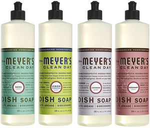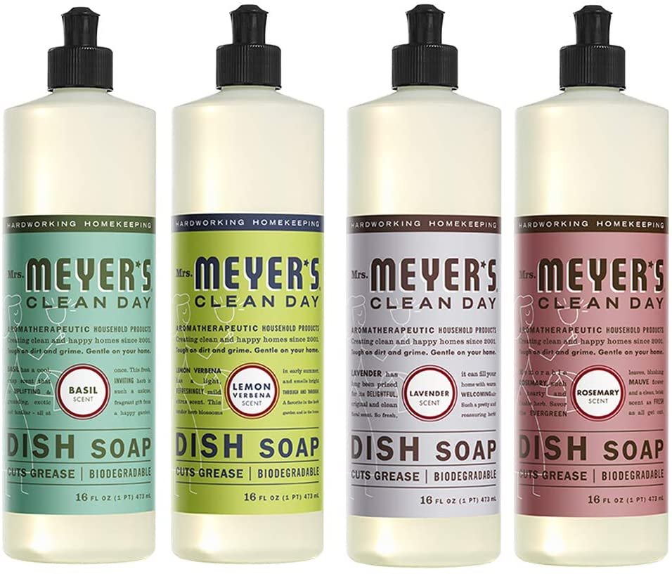 Mrs. Meyers Clean Day Liquid Dish Soap, 1 Pack Basil, 1 Pack Lemon Verbena, 1 Pack Lavender, 1 Pack Rosemary, 16 OZ each