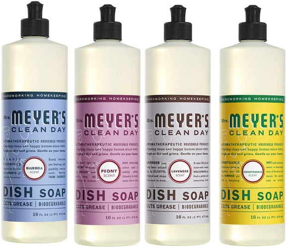 Mrs. Meyers Clean Day Liquid Dish Soap, 1 Pack Bluebell, 1 Pack Peony, 1 Pack Lavender, 1 Pack Honeysuckle, 16 OZ each