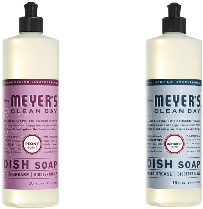 Mrs. Meyers Clean Day Liquid Dish Soap, 1 Pack Geranium, 1 Pack Snowdrop, 16 OZ each