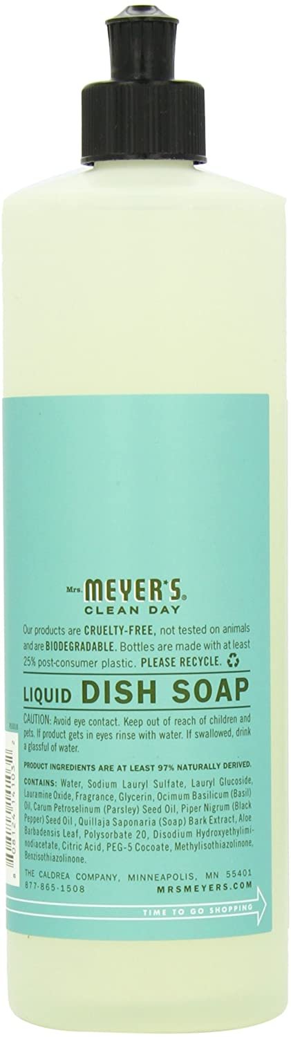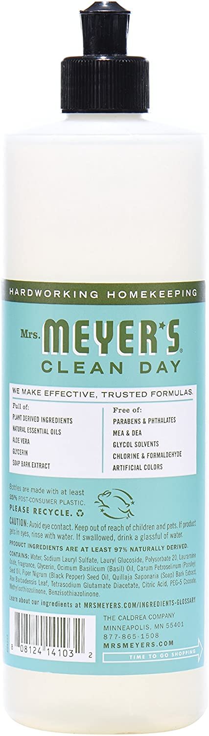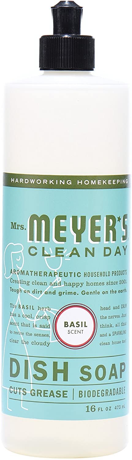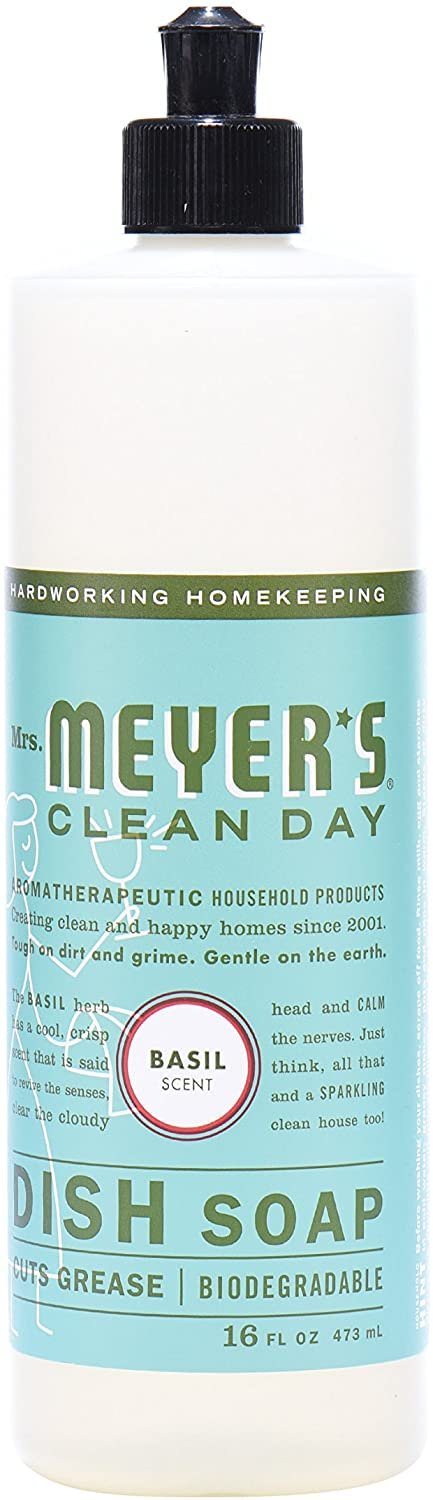 Mrs. Meyer's Clean Day Liquid Dish Soap, Cruelty Free and Non-Toxic, Basil Scent, 16 oz- Pack of 6